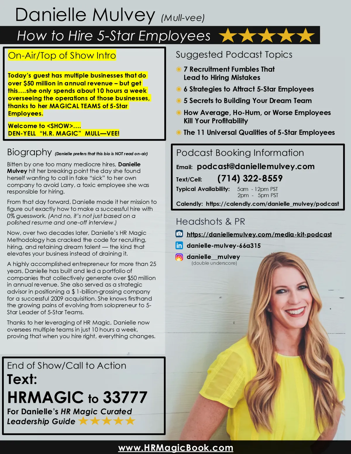 A highly accomplished entrepreneur for over 25 years, managing a current portfolio of companies grossing over $50 million in annual revenue, Danielle Mulvey has experienced and overcome the struggles of evolving from solopreneur to 5-Star Leader of a 5-Star Team. Building 5-Star Teams has afforded Danielle the freedom to explore new business opportunities and regain quality time with her family – a goal she wants to make possible for fellow ambitious entrepreneurs.